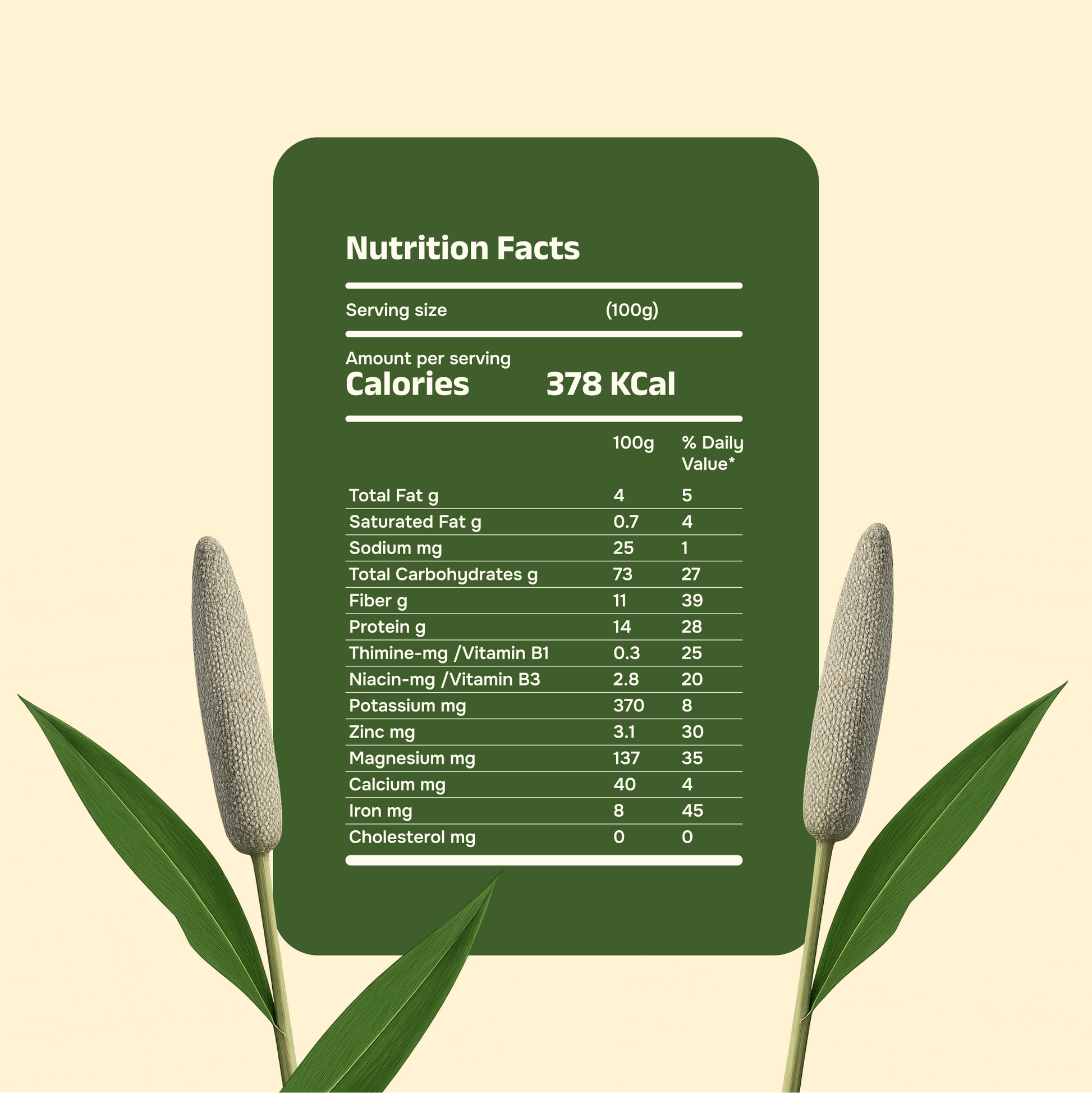 Our Organic Sprouted Bajra Flour is made from 100% certified organic pearl millet that’s sprouted, stone-ground, and cold-milled for maximum nutrition and easy digestibility.