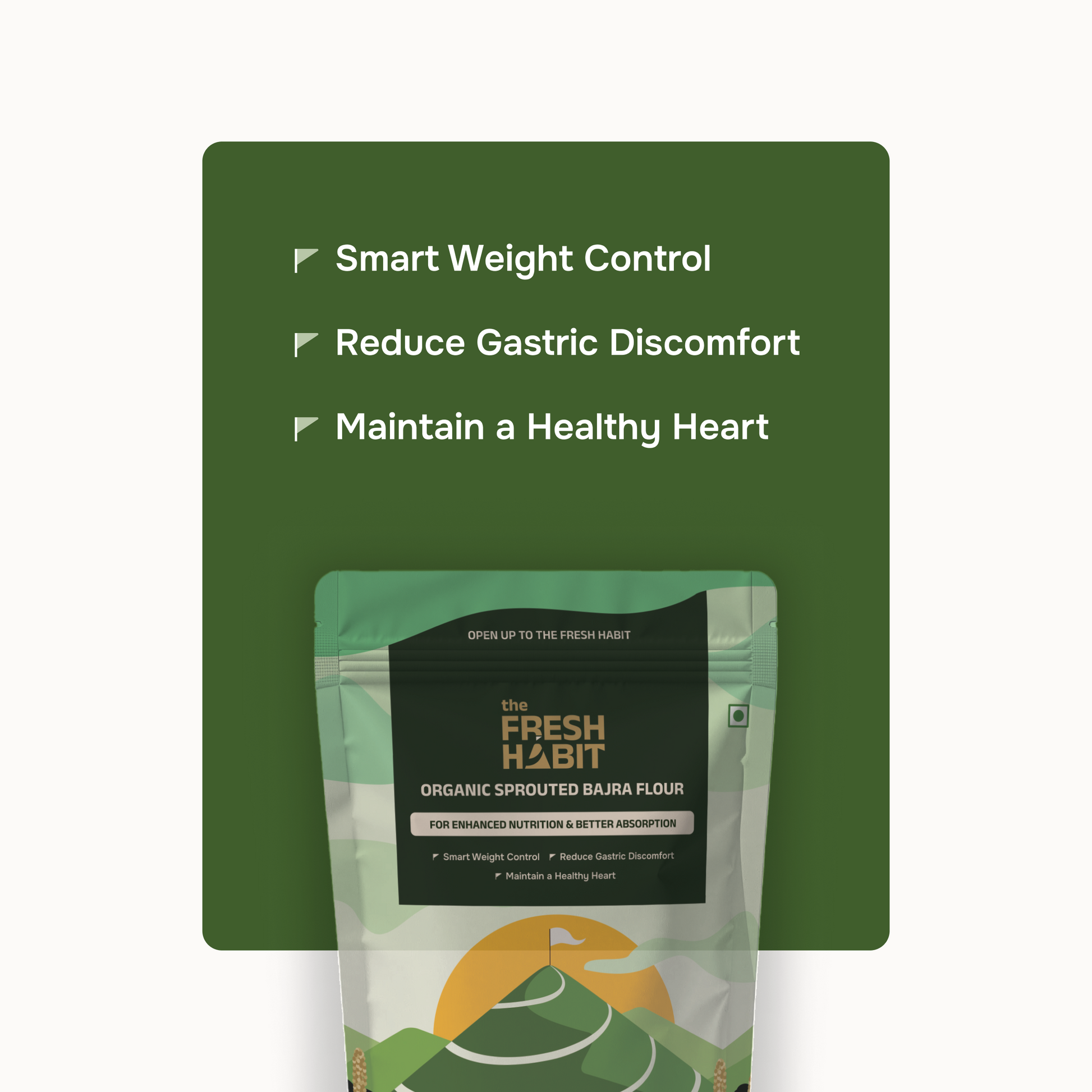 Sprouting transforms bajra into a more powerful, gut-friendly grain. Some key benefits of The Fresh Habit Organic Sprouted Bajra Flour are: